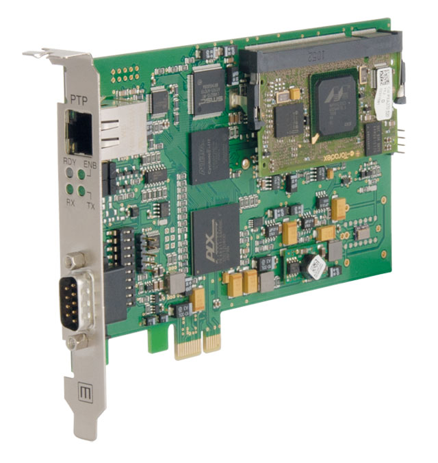 This PTP PCI Express slot card is the best choice for adding a highly accurate time base to your servers or workstations over a simple Ethernet connection. The time source for the card is a IEEE1588 grandmaster clock like the LANTIME M600/GPS/PTP. In the past, sub-microsecond accuracy in PCs could be achieved with GPS synchronized devices only but now with PTP there is no need for complex antenna cabling to every PC.